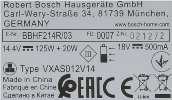 | Bosch porszívó | BBHF214R/01 |