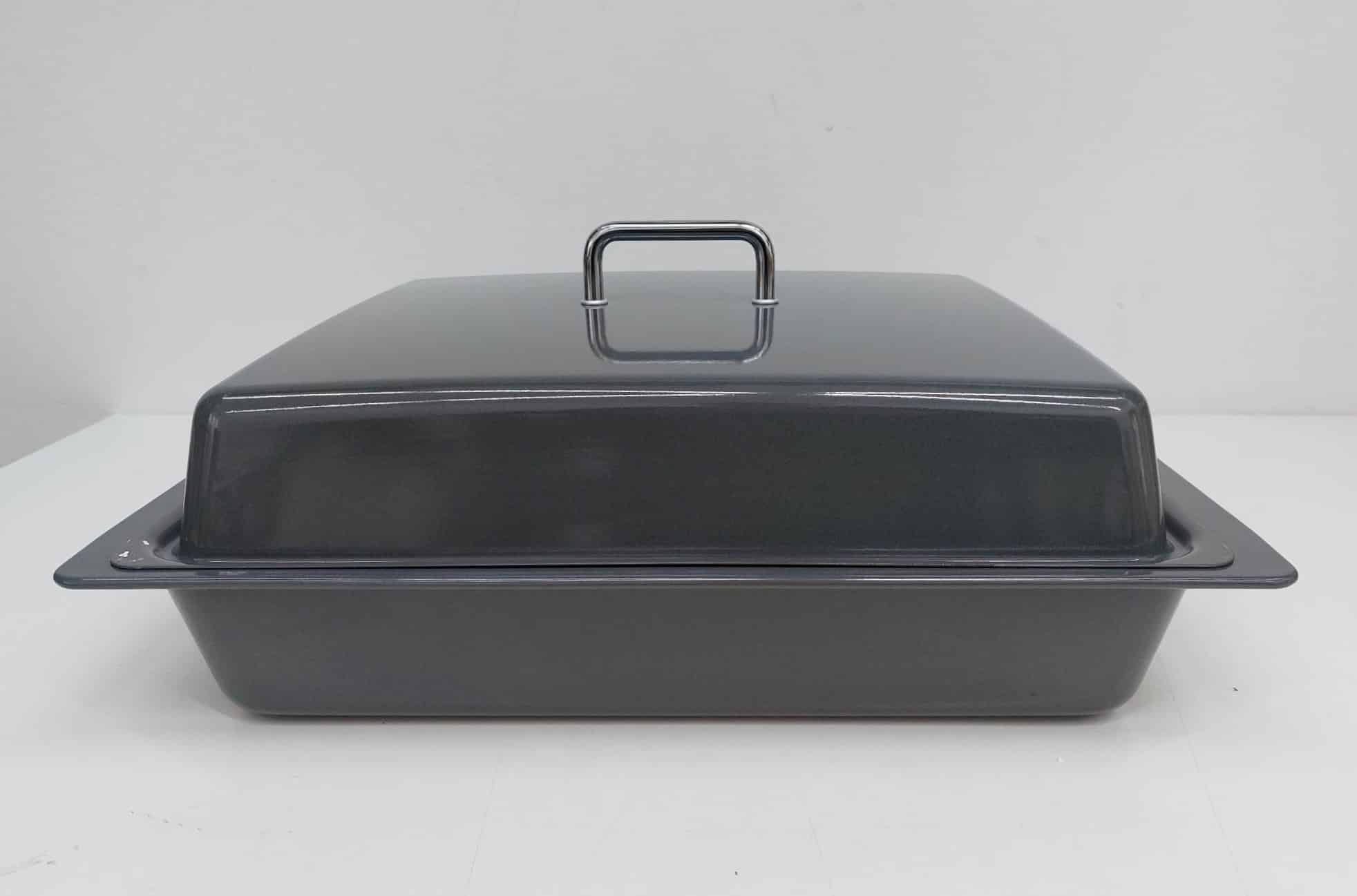 • Extra mély zománcozott tepsi sütőhöz, behelyezhető ráccsal hozzávaló fedéllel, szürke színben.