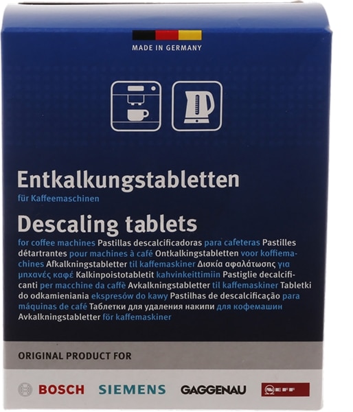 • A tabletták 6-12 alkalmazáshoz elegendőek. Vízkőmentesítő tabletta kávéfőzőgépekhez, vízforralókhoz. Hatékonyan, gyorsan és megbízhatóan távolítja el a vízkőlerakódásokat. A rendszeres vízkőmentesítés növelheti a készülék élettartamát és teljesítményét. A vízkőoldónak nincs zsírtisztító hatása. A természetesen képződött kávézsír lerakódások további eltávolítása és így a kávébab aromájának biztosítása érdekében további tisztító tabletták használata javasolt. Alkalmazás vízkőoldó programmal rendelkező készülékekhez: Külön edényben oldjunk fel 2 db vízkőoldó tablettát 0,5 liter langyos vízben kb.5 percig. Öntse a vízkőoldó oldatot a víztartályba, és ha szükséges, töltse fel vízzel a jelig. Ezután kérjük, vízkőtelenítsen a készülék használati utasításának megfelelően. Alkalmazás vízkőoldó program nélküli készülékekhez: Vízkövesedés esetén oldjunk fel 2 db vízkőoldó tablettát 0,5 liter vízben, az oldatot öntsük a kávéfőző vagy vízforraló víztartályába. Kapcsolja be a készüléket, és hagyja, hogy az oldat felmelegedjen vagy átfolyjon. Ezután háromszor alaposan öblítse le tiszta vízzel. Figyelem: Kérjük, hogy a vízkőmentesítést pontosan a készülék használati utasításában leírtak szerint végezze, és tartsa be a megadott mennyiségeket. Ne használja horganyzott és zománcozott eszközökön, kivéve a saválló zománcozott készülékeket.