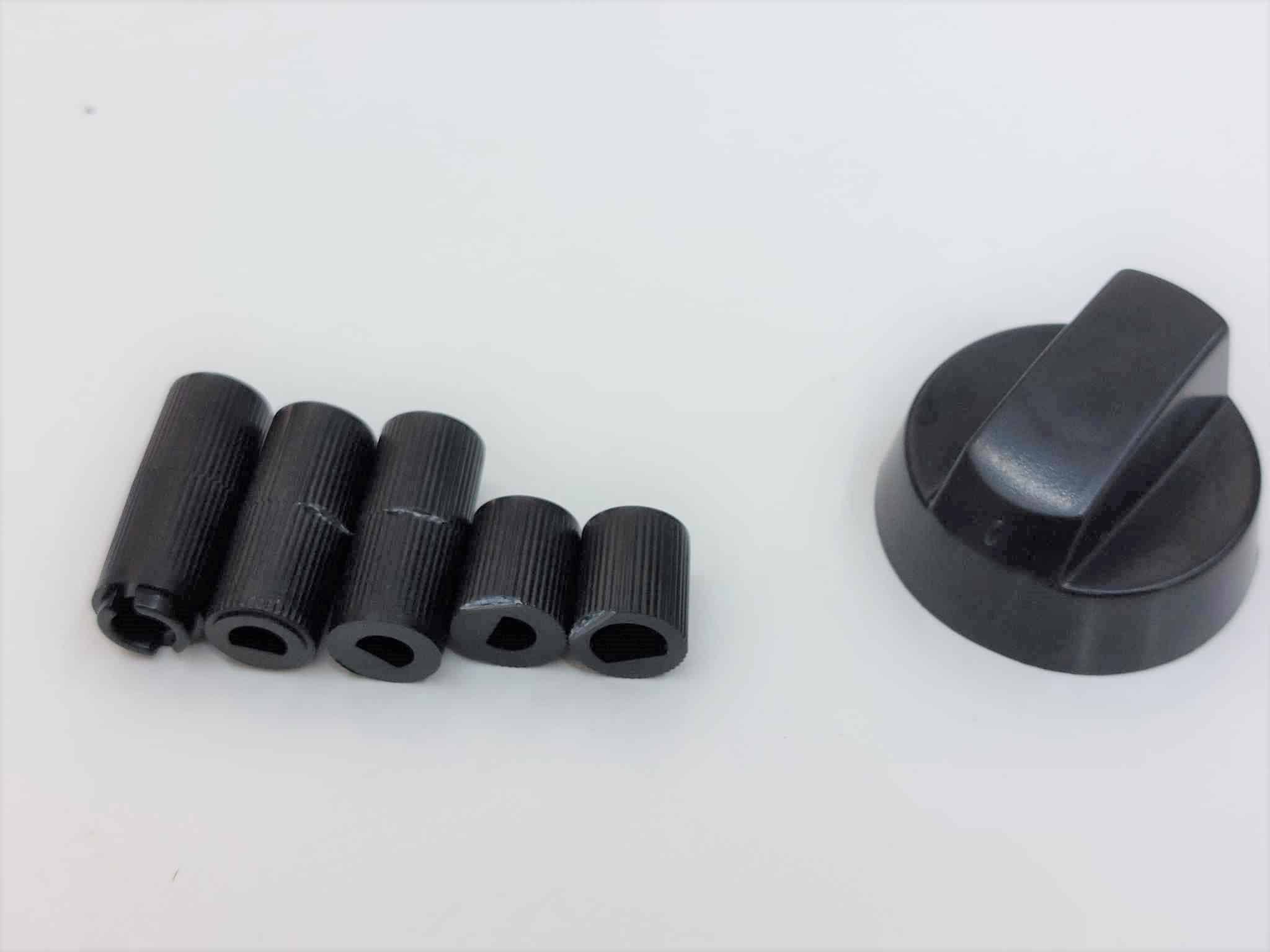 A fekete forgatógombhoz jár 5 darab variálható stift. Keresse meg a tűzhelyéhez megfelelő csatlakozást, tegye be az univerzális gombba a megfelelő irányba.